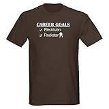 Don't waste time deciding on which shirt to put on each morning. This dark shirt t-shirt will never go out of style and hides stains better too. This high-quality t-shirt is pre-shrunk and 100% cotton, which makes it both comfortable and durable.... More >> Electrician Career Goals - Rockstar Funny Dark T-Shirt by CafePress